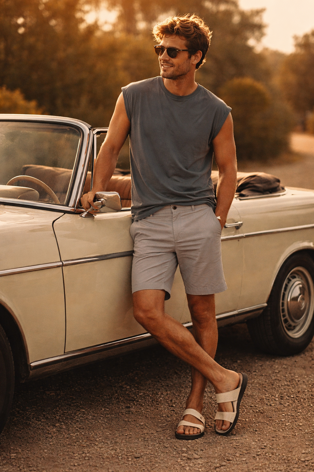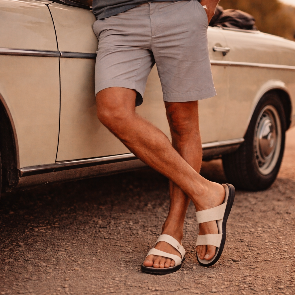 Men’s Cotton Short Sleeve Henley Shirt – Sand Beige