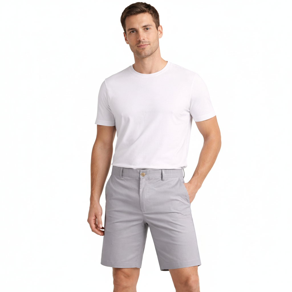 Men’s Light Grey Shorts with Button Closure